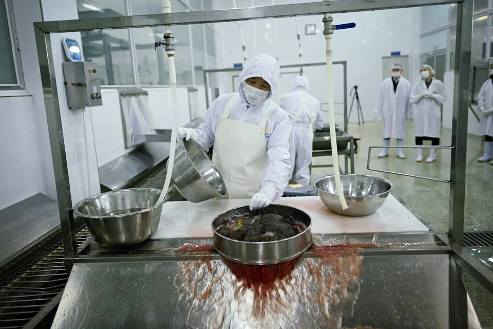 Kaluga Queen has 300 employees looking after some 200,000 sturgeons. Once they reach sexual maturity, females are fished out and taken to a laboratory where they are stunned before their bellies are sliced open to extract the black eggs.
