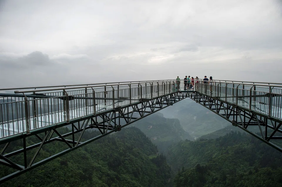 Last year, a 430m long, 300m high glass bridge opened in central Hunan province. It temporarily closed after being overwhelmed by crowds.