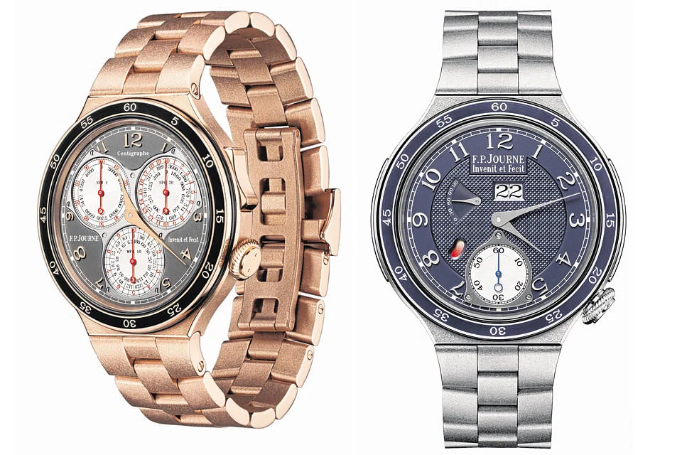 The latest pair of Centrigraphe and Automatique Reserve mark a major revamp of F P Journe's LineSport and they are the first timepieces in the line that don't have rubber inserts on their cases and bracelets, which are entirely precious metals.