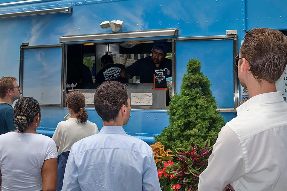AROUND 11.30am on a muggy July Wednesday in midtown Manhattan, the line for Uncle Gussy's food truck started to form.