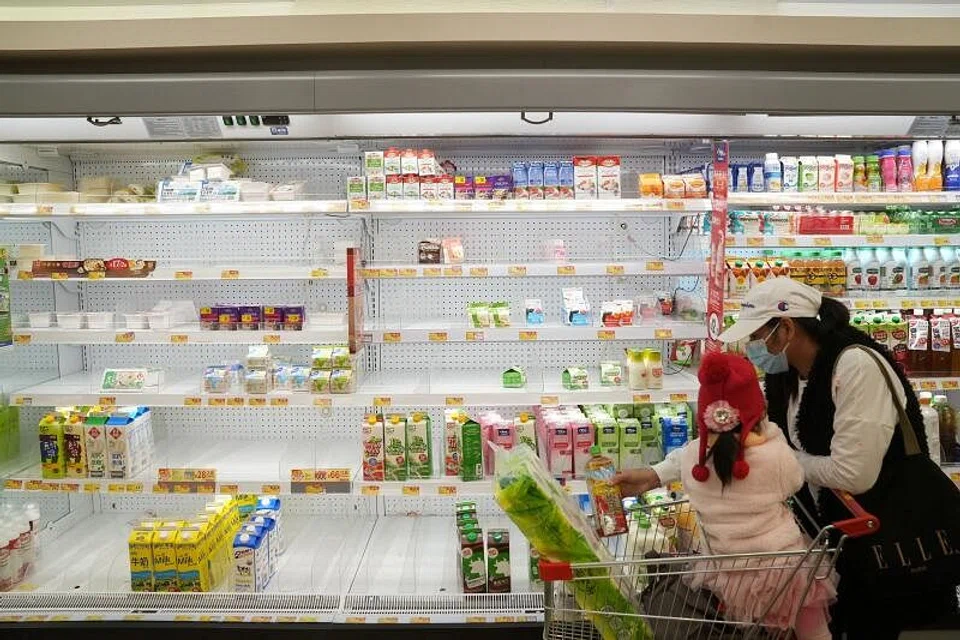 "I still don't know if they can cross the border. If there is none, the prices will further increase or we have nothing to sell." Shelves stocking vegetables, tissues and cup noodles were bare at several supermarkets across the former British colony with customers stocking up over concerns that products would be even harder to get in the coming days.