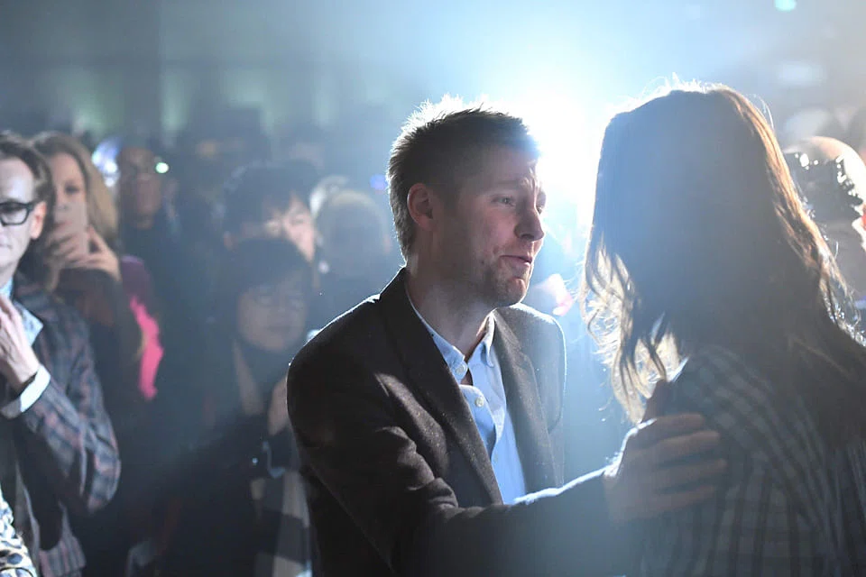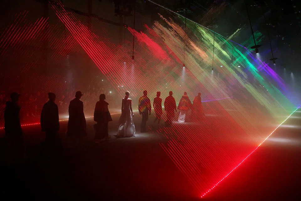 BURBERRY'S star designer Christopher Bailey bid goodbye to the British brand on Saturday with a colour-infused show, showcasing designs with a rainbow twist on the label's famed check print on a catwalk lit with laser beams.