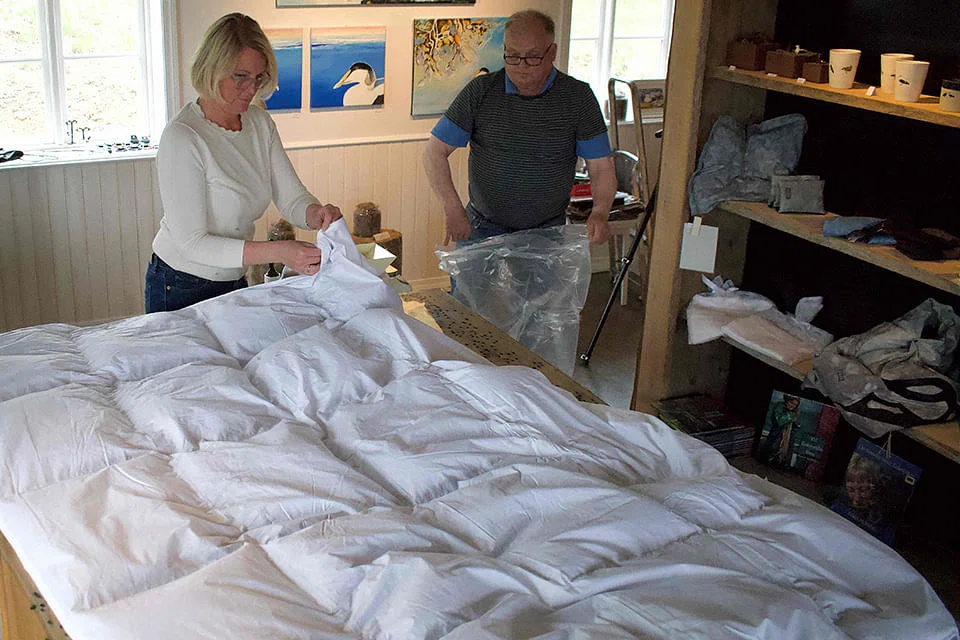 About 60 nests are needed to produce one kilogramme of down - a quilt needs between 600 and 1,600 grammes, depending on the quality chosen.
