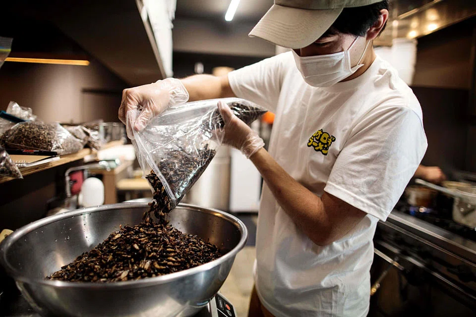 IN a steamy Tokyo kitchen, a roasted scent wafts through the air as Yuta Shinohara prepares soup stock for ramen, derived not from pork or chicken, but crickets.