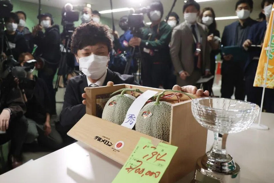 [TOKYO] In what might be the unlikeliest indicator of a post-pandemic recovery, a pair of premium Japanese melons have sold for US$24,800 at auction, over 22 times more than last year's virus-hit price.
