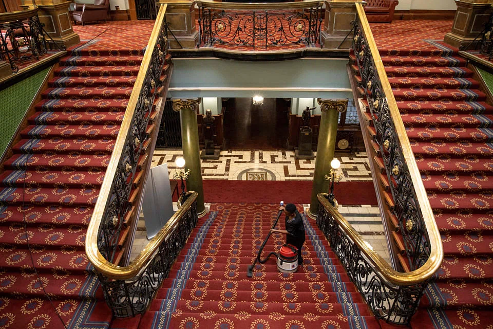 Women were not admitted until 1993 but Ms Germaner said she has never felt unwelcome. Vestiges of the past like hunting trophies are also displayed less prominently than they once were. A portrait of Nelson Mandela, a member in his lifetime, takes pride of place above the sweeping staircase at the heart of the club.
