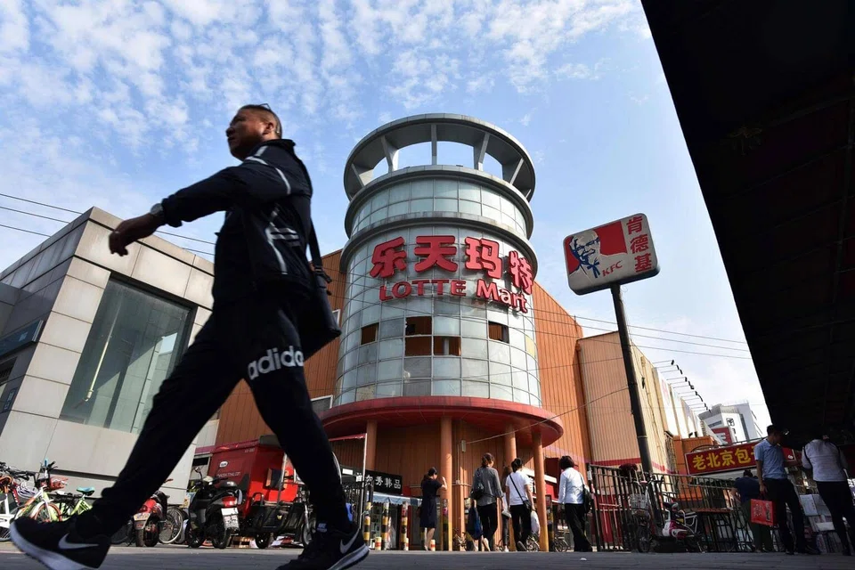 Sales at Lotte's China department business fell 22 per cent to 76 billion won (S$92.7 million) in 2017, resulting in 70 billion won in operating losses.