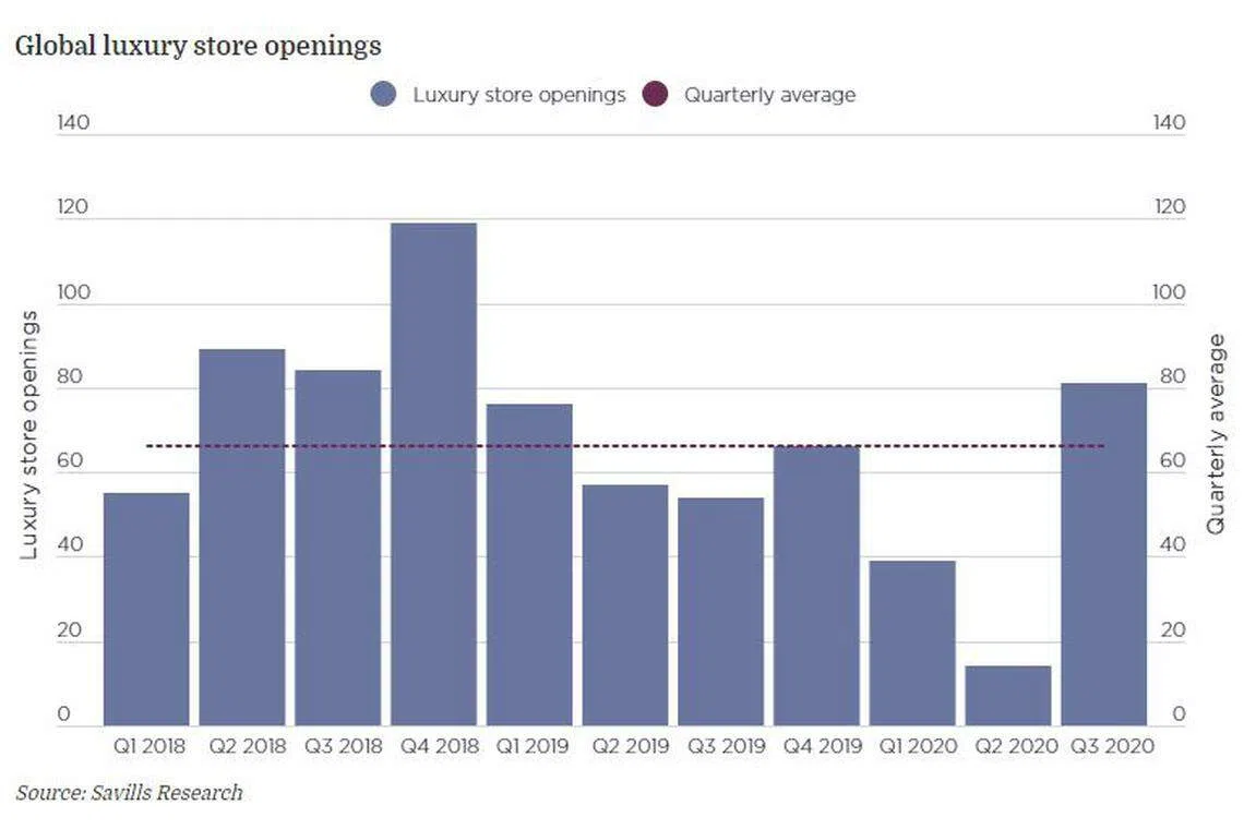 Savills noted that from July to September this year, there was a "strong bounce back" in global physical store openings, exceeding the quarterly average.
