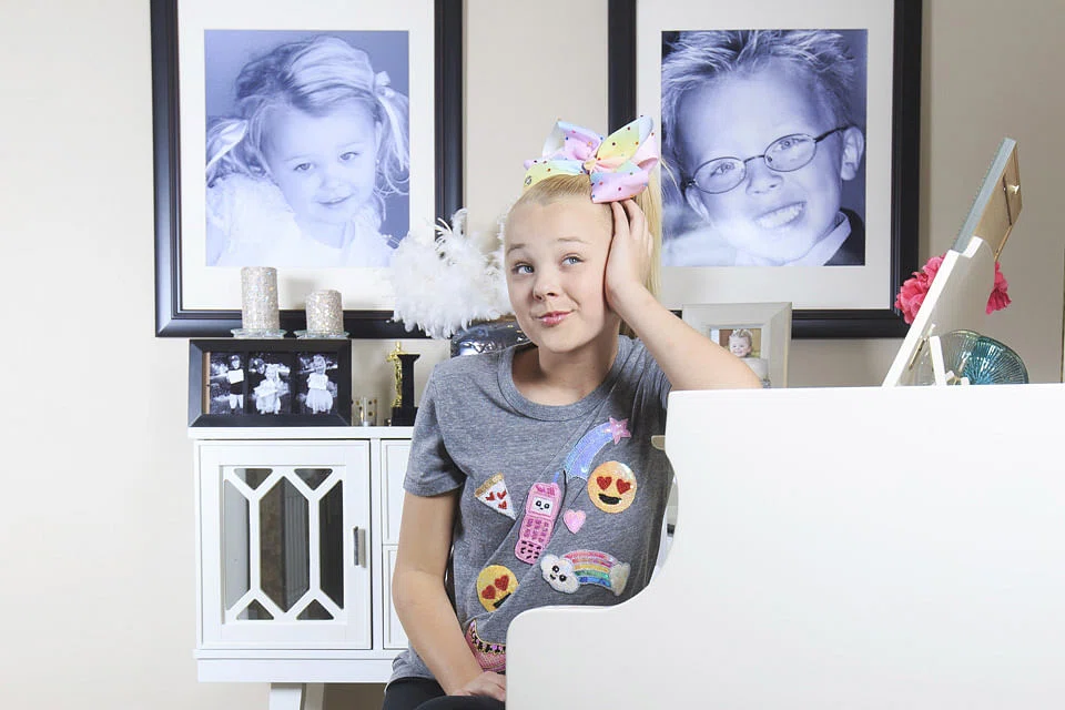 THIRTEEN-YEAR-OLD JoJo Siwa rolled up to school in a souped-up vintage car with a giant pink bow plastered on the grille. Inside the car, with her blond hair tightly pulled into a side ponytail and wrapped in a pastel yellow bow, she sang to her mother, I don't really care about what they say, while a group of mean girls wearing not-so-pastel clothes snickered from a bench. (We know they're mean girls because the words "mean girls" are displayed on the screen next to them.)