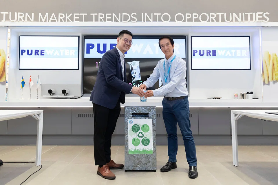 Launched on Tuesday, the new product, Purewater, comes in paper-based Tetra Pak cartons with caps made from a non-food substance derived from sugar cane - making Polar Water the first company in Singapore to put its water in cartons made by the Swiss packaging giant.
