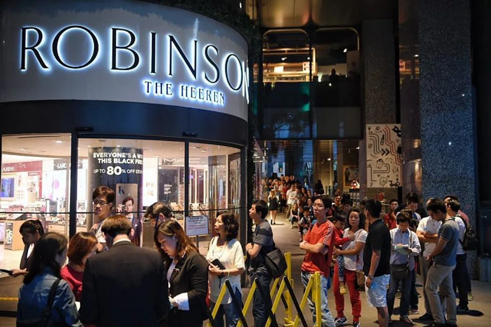 Singapore shoppers throng stores for Black Friday deals; Queue starts at Robinsons 11am the day before