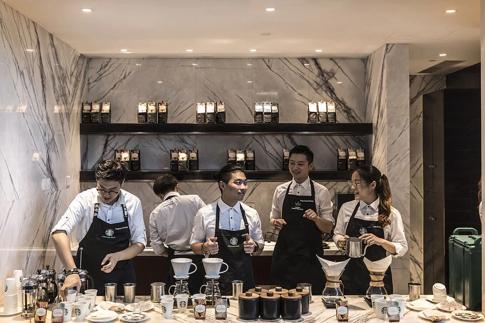 But there is pressure from local companies such as Luckin, which has expanded rapidly and offers cheap delivery, online ordering, big discounts and premium pay for its staff.
