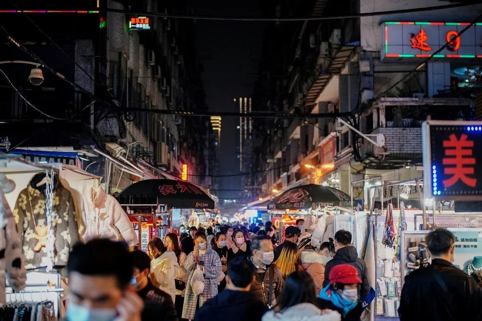"I really missed these more fun and exciting times, like going out shopping and eating with my friends," said 27-year-old shopper Hu Hang on Monday at a packed Wuhan night market selling Christmas sweaters among other goods.