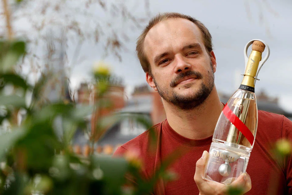 In search of a more elegant solution, around three years ago the Mumm team turned to Mr de Gaulle - a great-grand-nephew of the French wartime leader Charles de Gaulle - who came up with a bottle divided into two chambers. The champagne is in the upper portion, while below is a finger-controlled valve which uses the champagne's own carbon dioxide to eject small amounts of wine which emerges as foam.