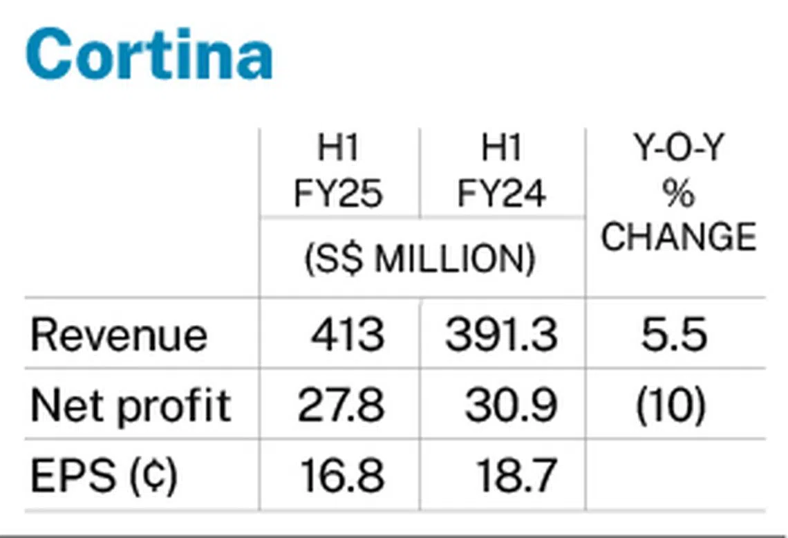 Cortina’s H1 profit falls 10% to S$27.8 million as expenses outpace revenue growth