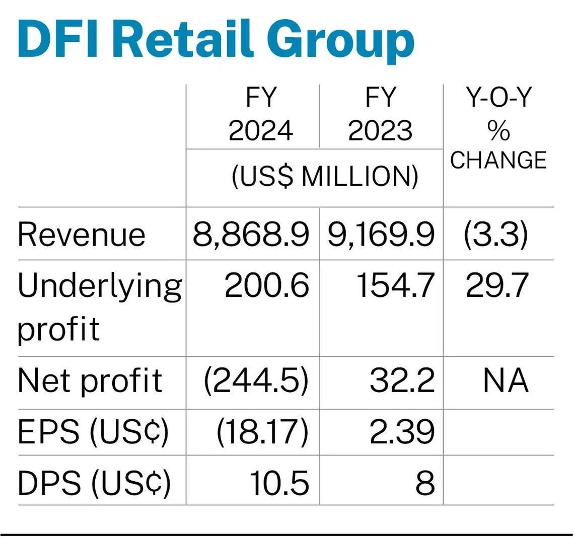 DFI noted that it expects underlying profit to be between US$230 million and US$270 million in 2025, boosted by an organic revenue growth of about 2 per cent.