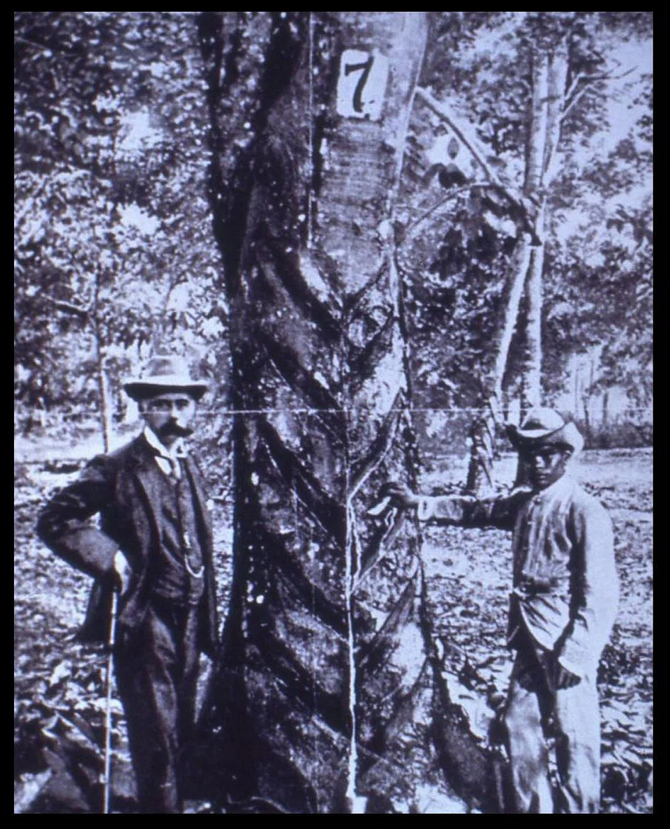 In Singapore, we can trace rubber's history to the Botanic Gardens, from which the first scientific director Henry Ridley pioneered commercial production in Malaya. Twenty-two rubber seedlings took root there in 1877, having originally been germinated in London's Kew Gardens from reputedly smuggled Brazilian seeds.