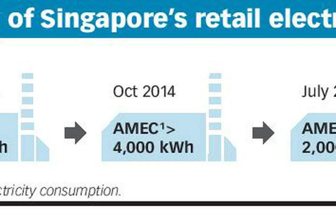 Singapore's opening up of the energy sector began in 2001, with the biggest energy-guzzlers among businesses first becoming eligible to opt to buy power from licensed retailers. The energy consumption threshold among businesses included under the net was gradually lowered over the years until 2015, when it settled at businesses consuming 2,000 kWh a month and up.