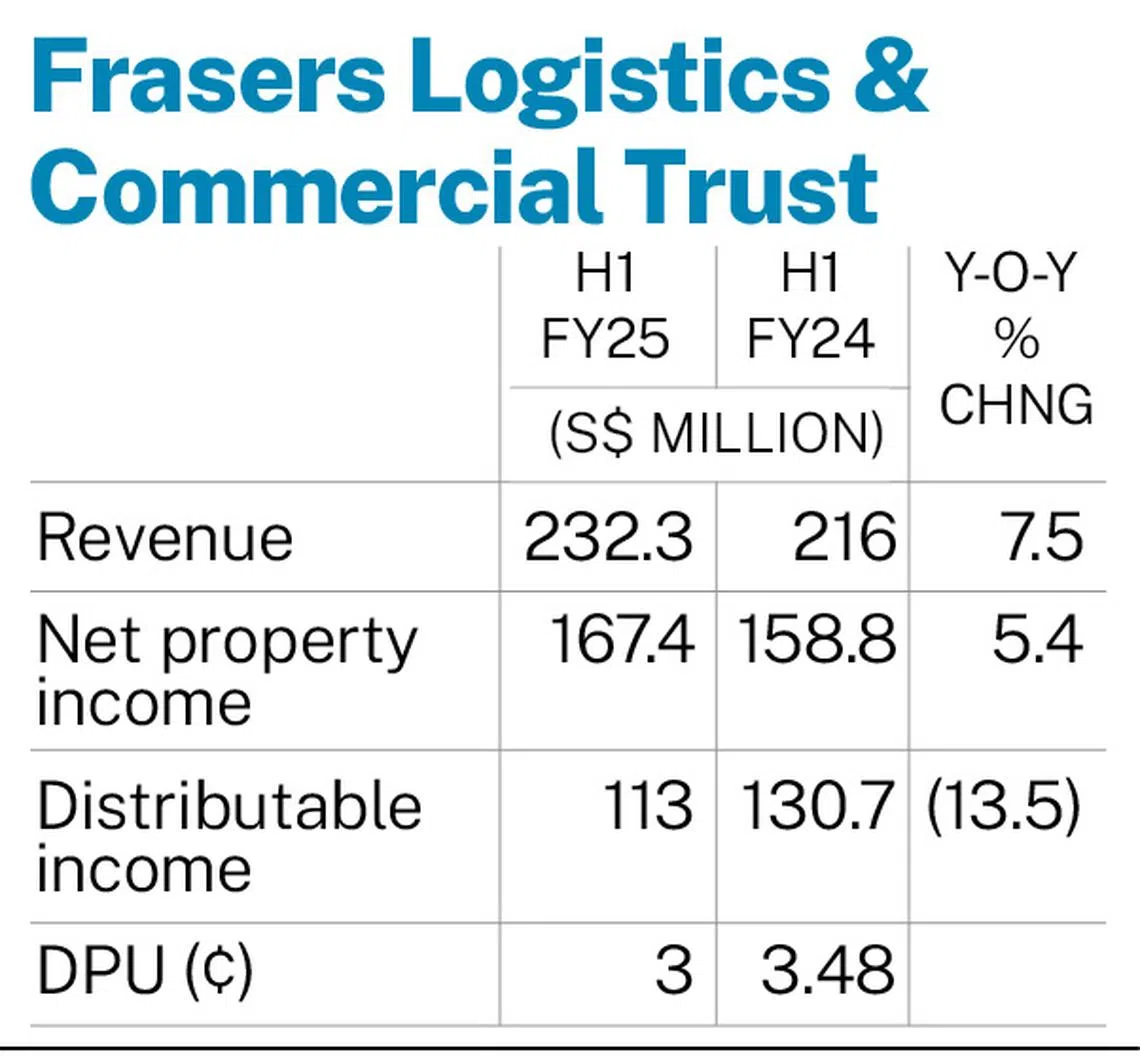 Frasers Logistics & Commercial Trust posts 13.8% lower H1 DPU of S$0.03 amid challenges in commercial portfolio