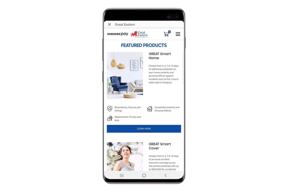 To access these products, Samsung Pay users will have to launch the Samsung Pay application on their mobile phones, and click on the Great Eastern icon within the new 'Discover' tab.