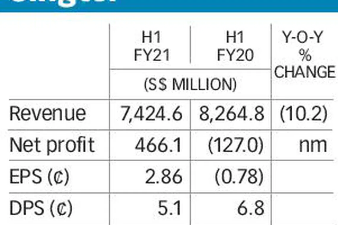Still, the board has approved an interim dividend of 5.1 Singapore cents a share - down from 6.8 cents a year ago - which will be paid on Jan 15, 2021, after books closure on Nov 30.