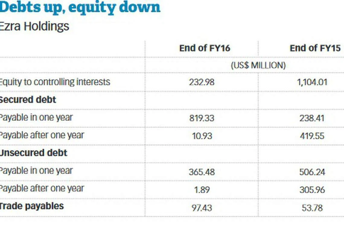 Ezra's trade payables and short-term debts ballooned between FY15 and FY16. The group's trade payables have exceeded US$97.4 million, up from US$53.8 million.