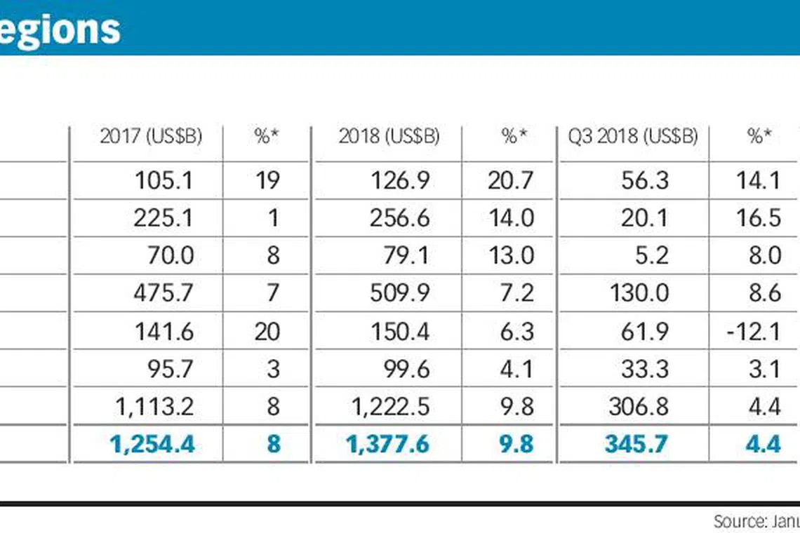 But Asia-Pac Q3 payout falls 2.8%, pulled down by Taiwan, Australia, while Singapore, South Korea stayed flat