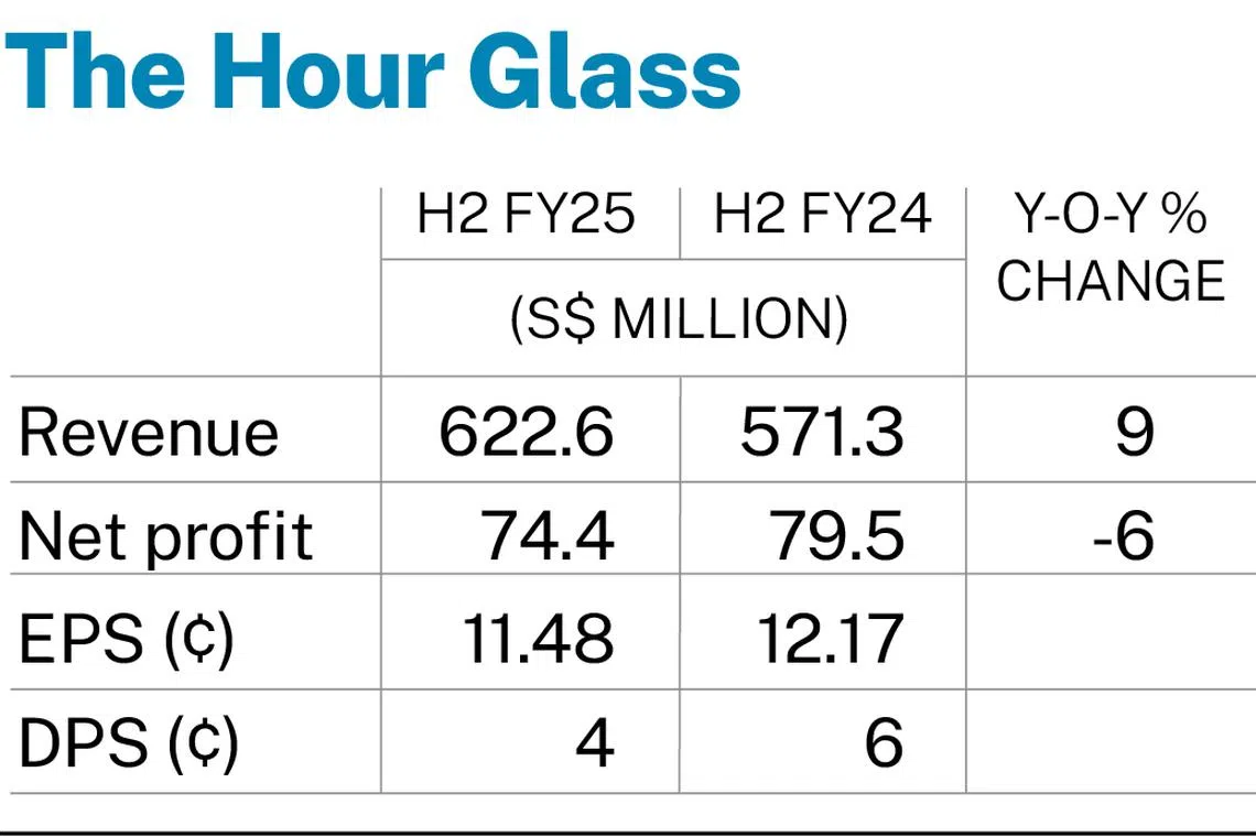 [SINGAPORE] The Hour Glass has reported a 6 per cent drop in net profit to S$74.4 million in the six months ended March 2025, from S$79.5 million in the year-ago period.