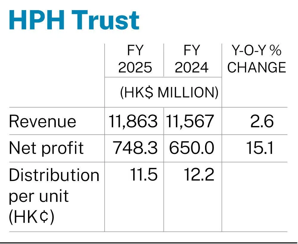 Overall, HPH Trust’s FY2025 net profit stood at HK$748.3 million, up 15.1 per cent.