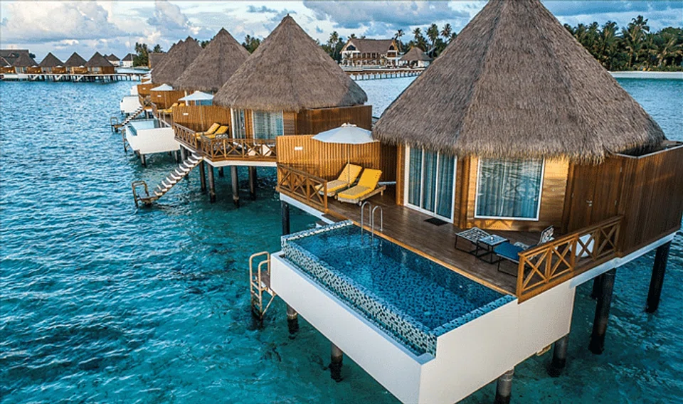 The Mercure Maldives Kooddoo Hotel, managed by the Accor group, has 68 villas including 43 located over water and 25 scattered along the beaches.
