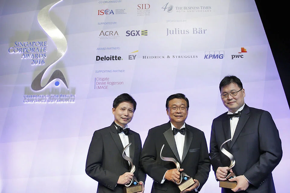 Also known as the "Oscars" for Singapore-listed companies, the glitzy ceremony at Resorts World Sentosa saw a total of 32 companies and six individuals taking home prizes, with the list of winners this year led by the Keppel group, which swept five awards and the CapitaLand group, which secured three.