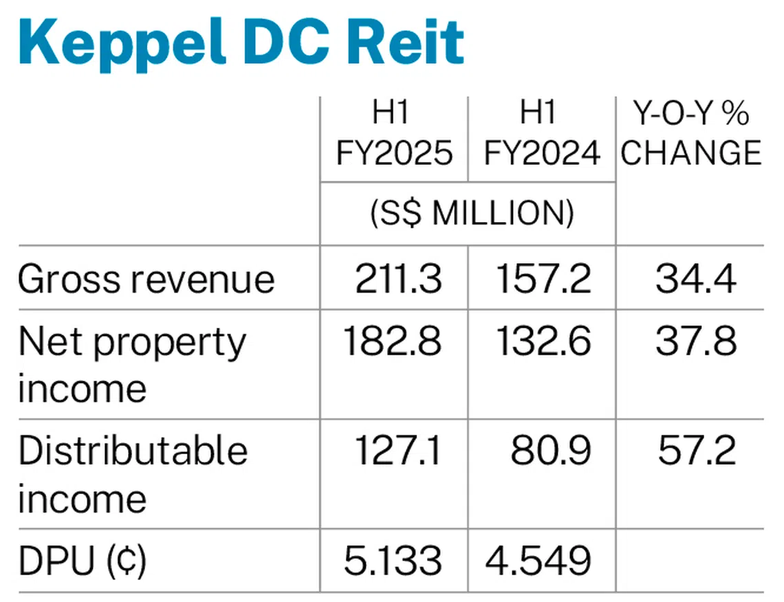 This was attributed mainly to contributions from the acquisition of data centre buildings Keppel DC Singapore (KDC SGP) 7 and 8 last November, and Tokyo Data Centre 1 in July 2024, and contract renewals and escalations.