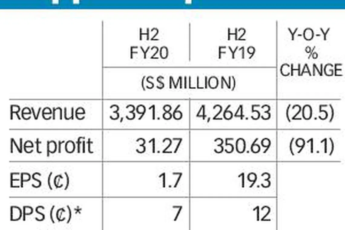 For H2 ended December 2020, the conglomerate's net profit fell sharply by 91 per cent to S$31.3 million from S$350.7 million a year ago owing to lower contributions across all key segments from urban development, connectivity and asset management and mainly led by losses in the energy and environment business.