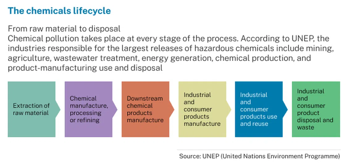 It adds that coordinated action from everyone in the chemicals value chain - from the chemicals industry itself to governments, regulators, investors and financiers, as well as civil society and consumers - is needed to tackle the problem.