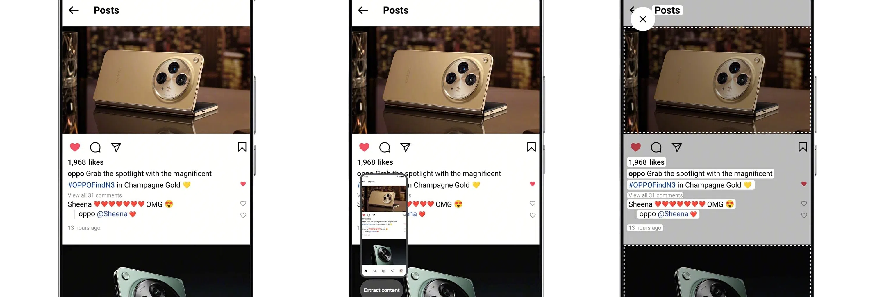 If you are the type who is constantly grabbing a screenshot to share with your friends, OPPO's Smart Touch feature lets you capture images with ease and recognises the text within seconds.