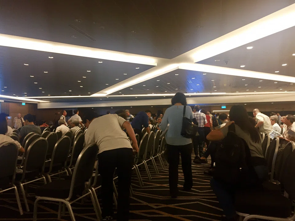 A MASSIVE number of shareholders walked out of Noble Group's special general meeting (SGM) on Friday in protest against its share consolidation move, after their request to have the resolution postponed was rejected. Still, the resolution was passed, with 99.73 per cent of votes cast in favour of it.