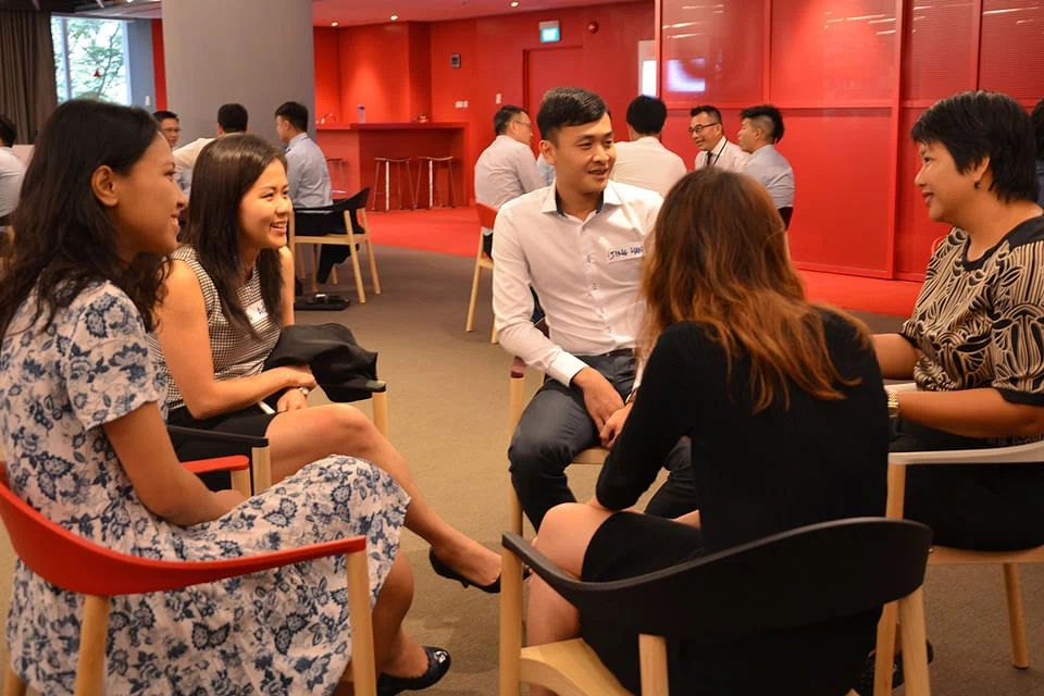 OCBC held a "speed networking" session on Friday for 35 of its Gen Y employees to mingle and learn from senior leaders in a non-traditional setting.