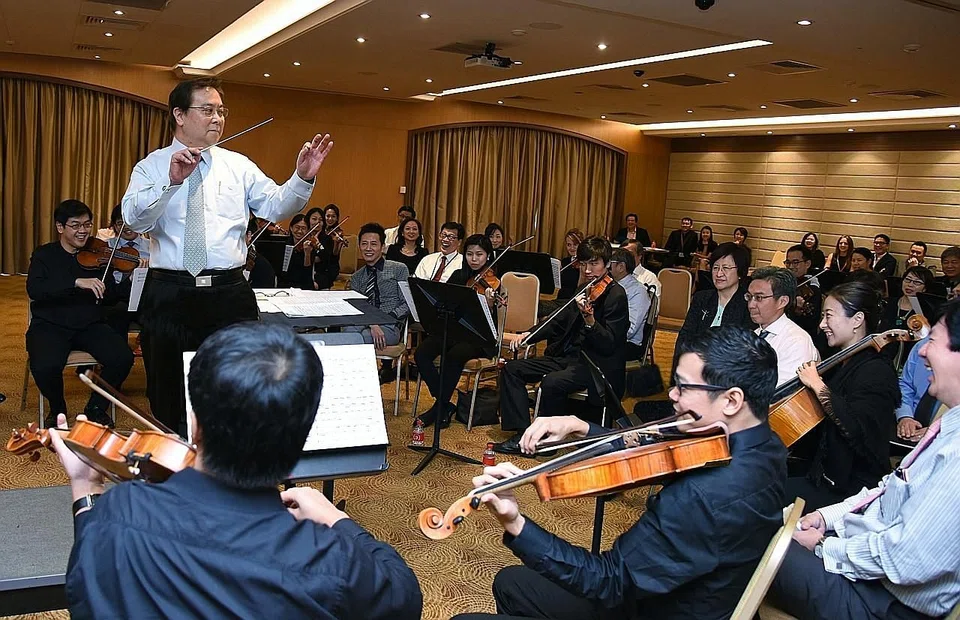 OCBC Group CEO Samuel Tsien tried his hand at conducting the Metropolitan Festival Orchestra at a unique staff leadership programme recently.
