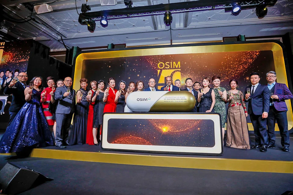 LIFESTYLE products group Osim Intenational held its 40th anniversary on Wednesday at a glitzy gala dinner held at Shangri-La Singapore. Founder Ron Sim hosted about 600 guests, including Law and Home Affairs Minister K Shanmugam, business leaders and associates. Osim, which is best known for its massage chairs, now operates a point-of-sales network with more than 401 outlets in 85 cities across 19 countries. The group was listed on the Singapore Exchange in 2000 and taken private in 2016.