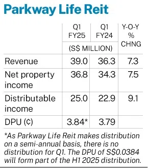 As Parkway Life Reit makes distribution on a semi-annual basis, there is no distribution for Q1. The DPU of S$0.0384 will form part of the H1 2025 distribution.