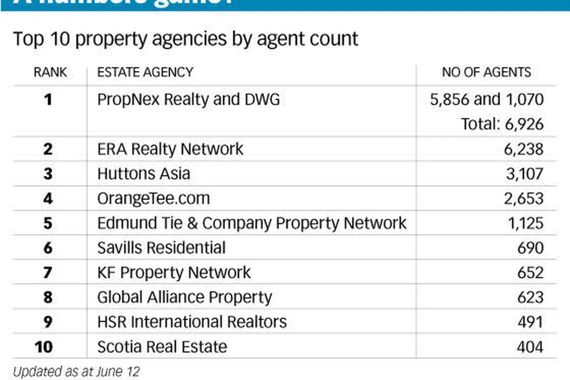 For DWG, it is ranked 6th in agent strength behind agencies Huttons, OrangeTee and Edmund Tie and Company Property Network - its agent count has been on the slide from over 1,500 in December 2014.