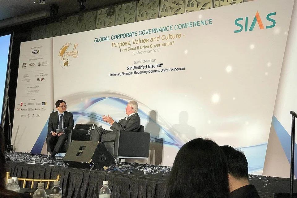 PURPOSE, value and corporate culture will drive corporate governance, said Winfried Bischoff, during the launch of the 8th Singapore Corporate Governance Week on Monday.