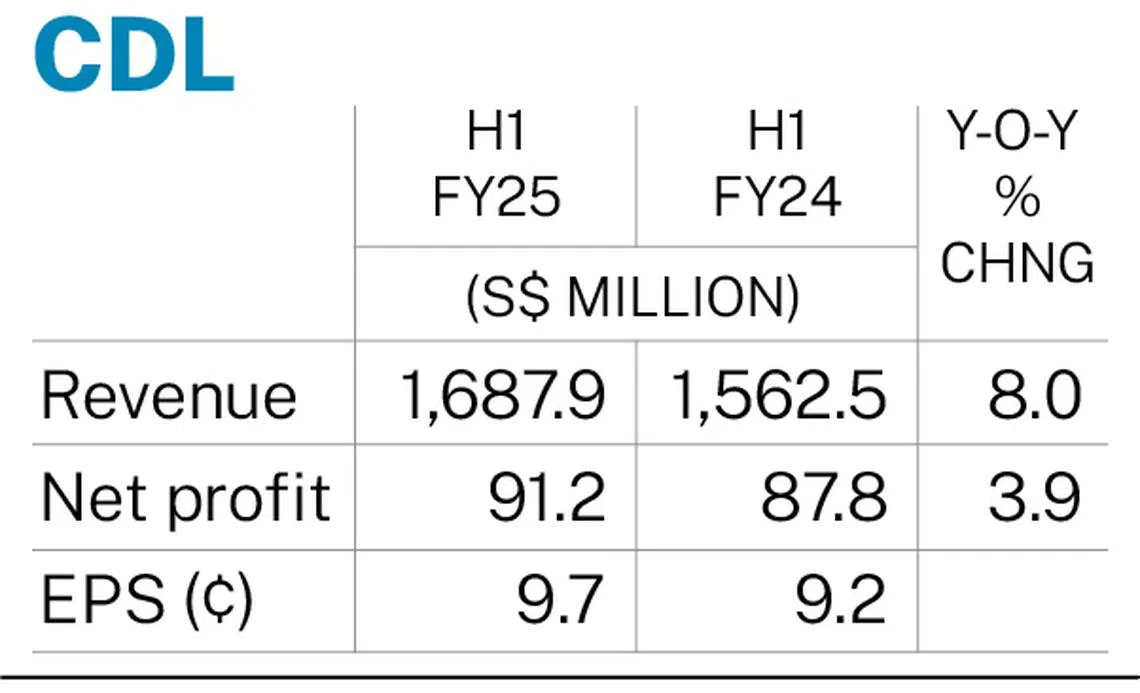 CDL H1 profit up 3.9% at S$91.2 million on robust condo sales; declares higher special dividend of S$0.03 per share