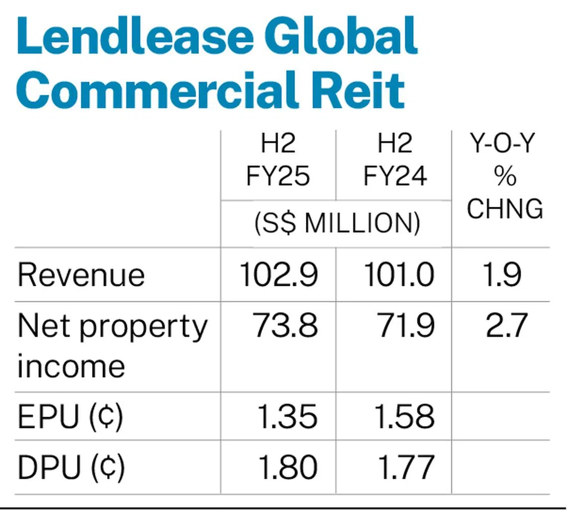 Lendlease Global Commercial Reit posts 1.8% higher DPU of S$0.018 for H2 FY2025