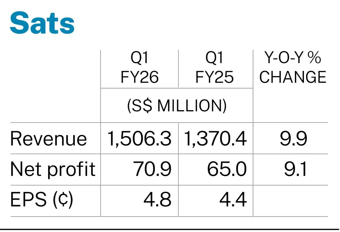 Sats shares ended Wednesday at S$3.18, down 1.6 per cent, before the results were posted.