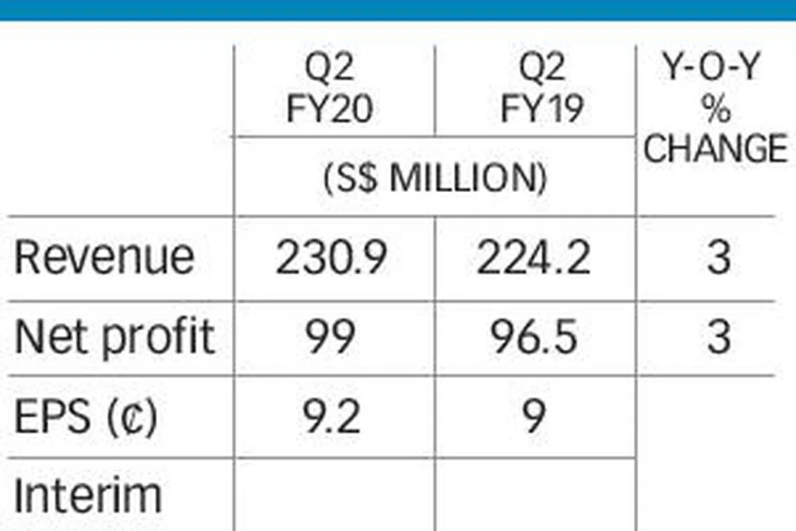 Earnings before interest, tax, depreciation and amortisation (Ebitda) came in at S$141.5 million compared with S$128.8 million. The Board of Directors has declared an interim dividend of 7.5 cents per share, unchanged from a year ago, payable on Feb 10, 2020.
