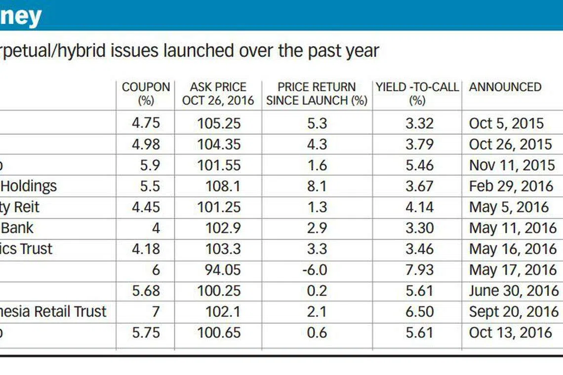 Perps sold by Reits which have done well include Ascendas Real Estate Investment Trust's 4.75 per cent and Keppel Reit's 4.98 per cent - both were sold in October last year and have returned about 5.3 per cent and 4.3 per cent over the past 12 months.