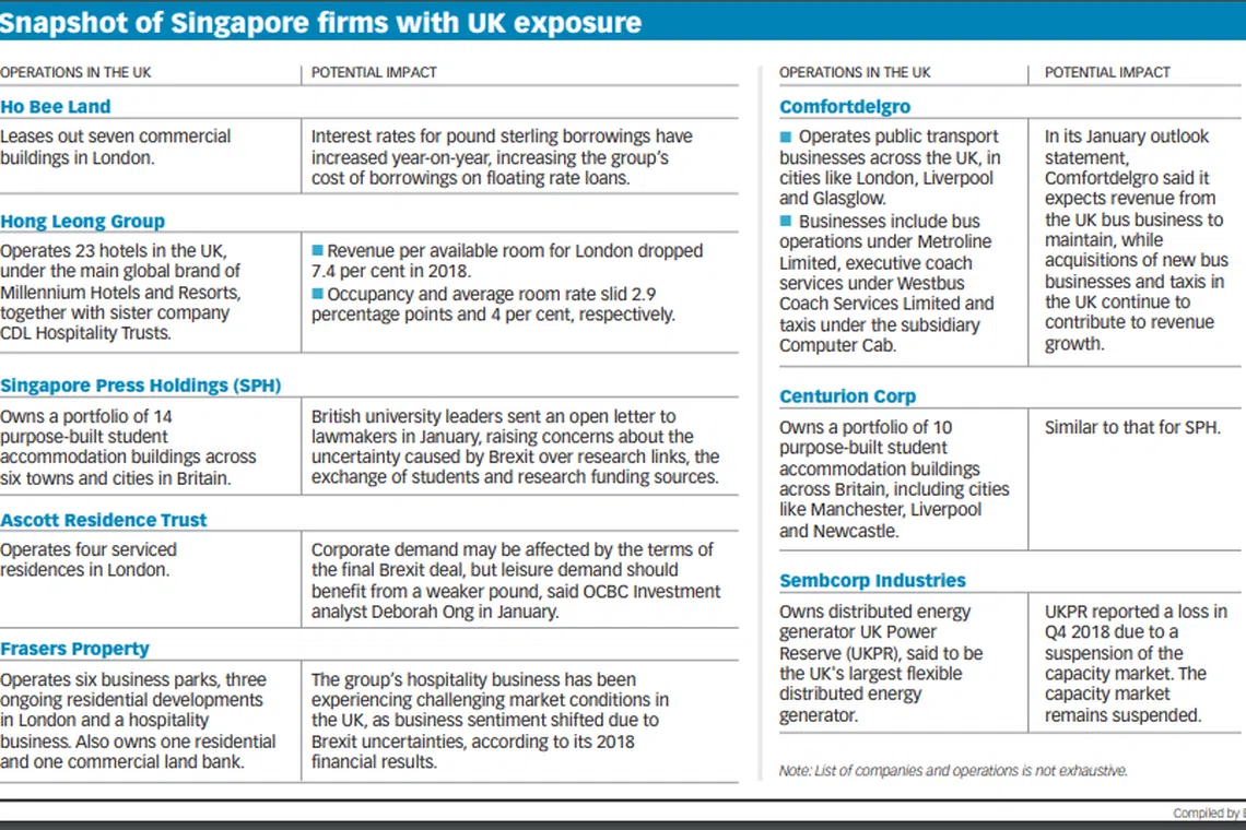AS UK lawmakers reject a no-deal Brexit, Singapore property players with exposure to the UK market are taking the uncertainties in stride, with a few even eyeing opportunities amid the turbulence.