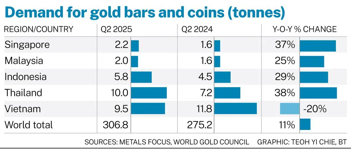 Singapore gold investment soars 37% to 2.2 tonnes in Q2 while jewellery demand wanes