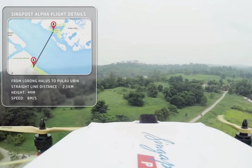In a statement on Thursday morning, SingPost said that "a last-mile mail and packet drone delivery trial" was successfully completed between Lorong Halus and Pulau Ubin.